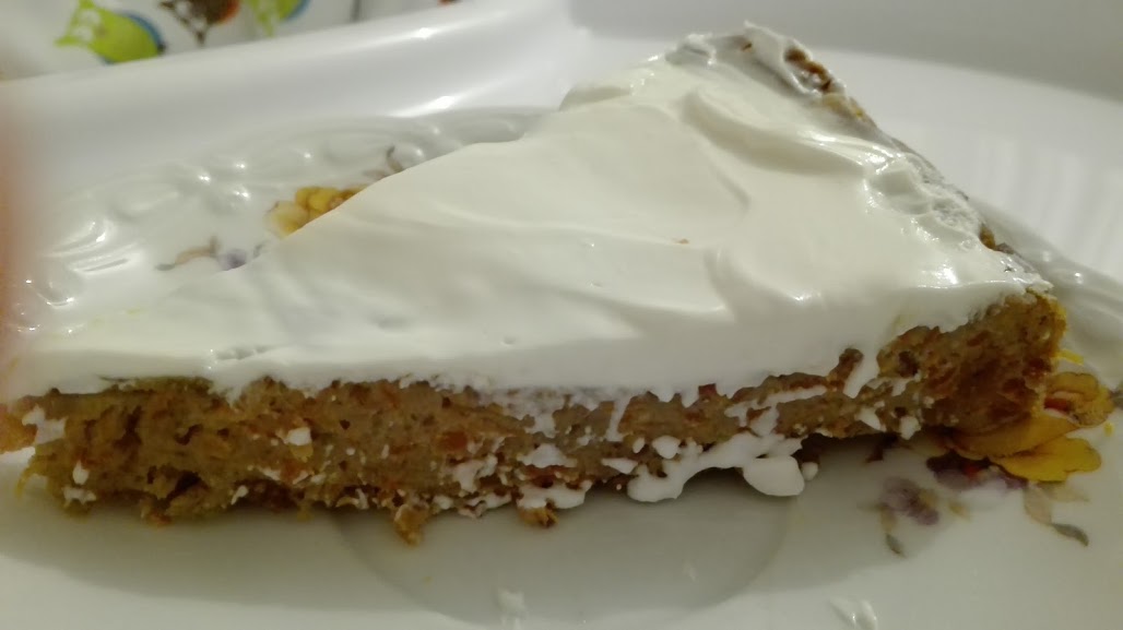 După îndelungi așteptări și o atitudine ușor sceptică față de preparatele cu morcovi care nu sunt chifteluțe de legume sau garnituri pentru carne, am hotărât să îi acord o șansă acestei rădăcinoase și bine am făcut! A ieșit o minunăție, pe care noi o vom devora ca mic-dejun, dar poate la fel de bine să fie o gustare, un desert sau chiar un tort luniversar/aniversar.