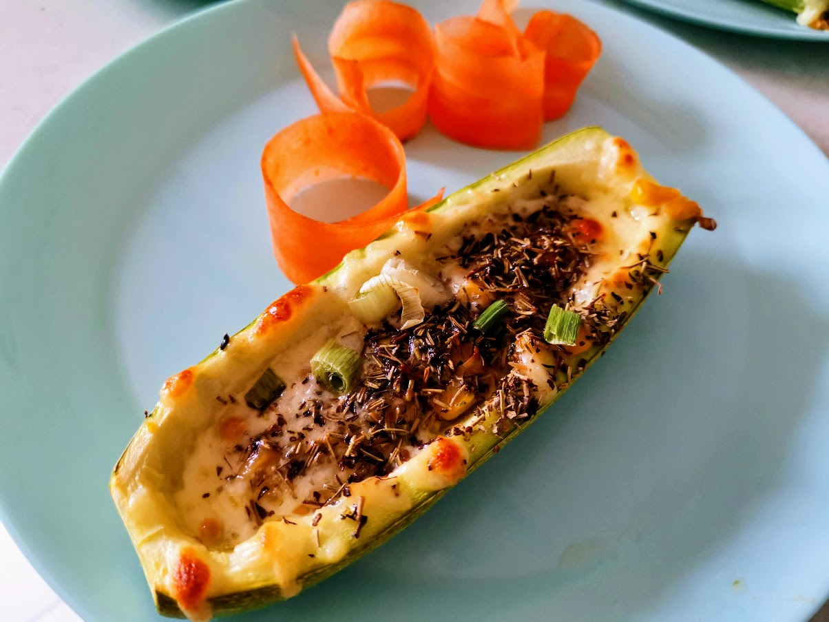 Asta e o rețetă cu gust de vară. Se face super repede, iar dacă și copiii voștri sunt fani boabe de porumb la fel ca ai mei, se vor bucura nespus să găsească micile surprize ascunse sub păturica de mozzarela. Noi am folosit des această rețetă ca garnitură pentru carnea gătită la slow cooker, însă puteți folosi dovleceii umpluți ca masă de sine stătătoare și sunt și hrănitori și ușor de luat la pachet, pentru drumeții.