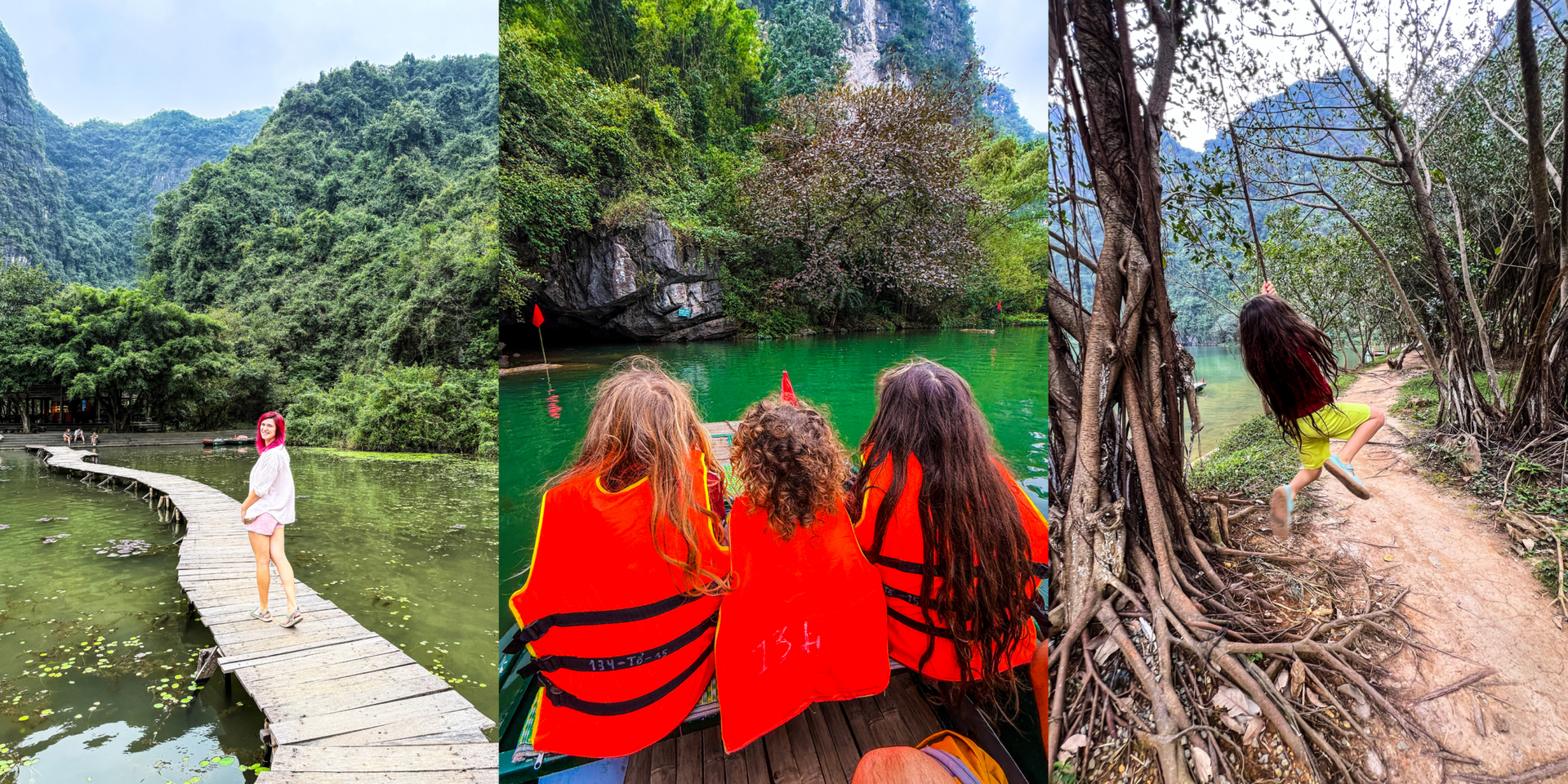 Apa e calmă, stâncile de calcar se ridică în jurul tău, iar doamnele de la vâsle murmură cântece sau glumesc între ele. Trang An e mai aerisit și mai variat decât Tam Coc și funcționează foarte bine pentru familii cu copii.