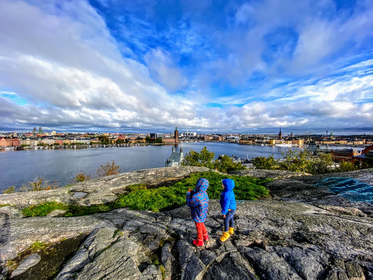 Parcă nicio excursie nu este completă până când nu vedem locul de sus. Skinnarviksberget este cel mai înalt punct natural din centrul Stockholmului. Mulți localnici merg aici să facă picnicuri sau petreceri în aer liber. Drumul poate fi parcurs printre stânci sau pe scări, noi, bineînțeles, am preferat să ne cățărăm un pic împreună cu cei mici. De sus poți admira în voie, Gamla Stan-ul, Stockholm City Hall, Kungsholmen și întinderile de ape. Parcul din spatele dealului are și un loc de joacă și o cafenea.