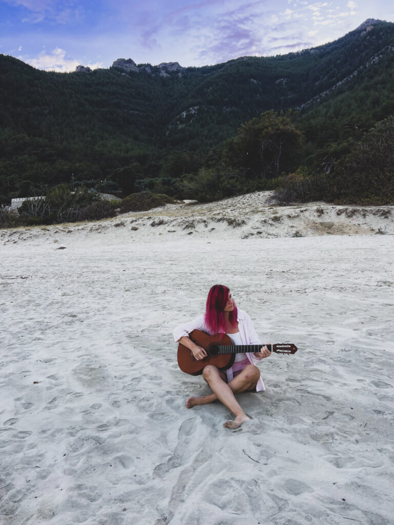 - Saliara Beach (Marble Beach): nisip alb de marmură, apă turcoaz, contraste superbe. În extrasezon, fără aglomerație, devine o experiență aproape meditativă, împărțită, în cazul nostru, cu câteva pisici curioase.